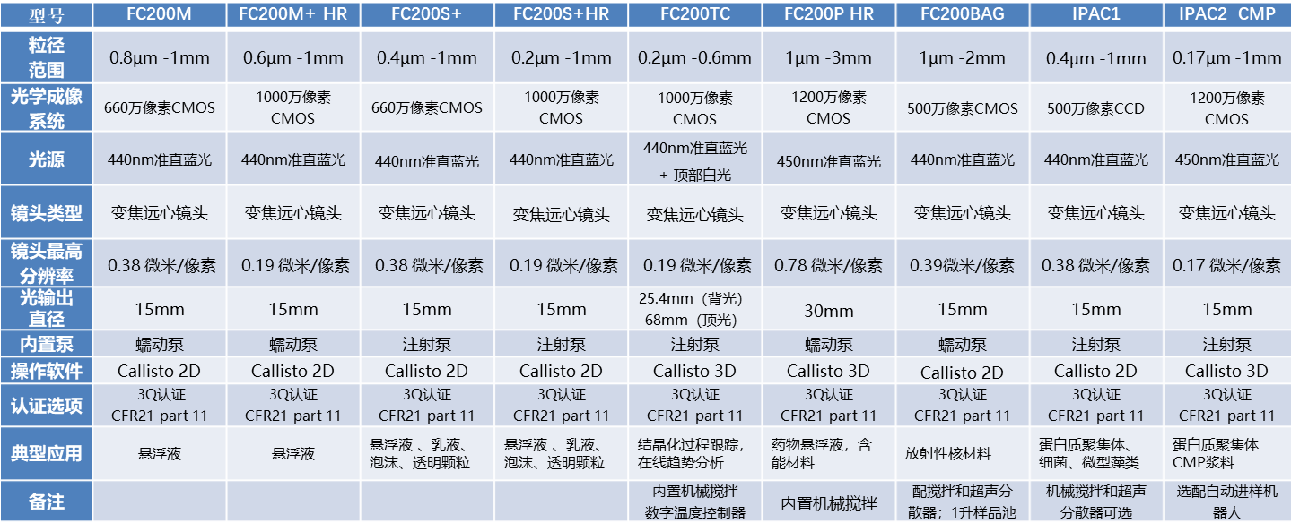 FC200P(0.7 μm-3 mm)主要用于藥物懸浮劑分析